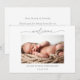 Anuncie o nascimento do seu precioso milagre com este cartão de boas-vindas de bebê em cinza sutil. O design apresenta um espaço branco limpo para mostrar a primeira foto do seu bebê, nome, data de nascimento e uma mensagem personalizada para compartilhar com amigos, familiares e entes queridos.