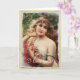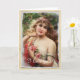 Cartão de Boas Vindas de Mulher Vitoriana com Rosa