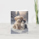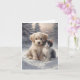 Cartão de cumprimentos em branco com um adorável cachorrinho e gatinho posando na neve.