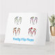 Quatro pares de chinelos funky em um cartão de cumprimentos branco