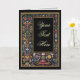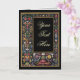 Arte gótica vintage proveniente de um manuscrito iluminado antigo, com flores coloridas e folhas decorativas sobre um fundo preto. Internamente, apresenta uma capa na cor vermelha intensa e texto personalizável com elementos de manuscrito. Adicione o seu texto de cumprimento pessoal e escolha os estilos de letras na parte frontal e interna.