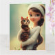 CARTÃO DE ARTE MENINA E GATO FOFO PENSANDO EM VOCÊ. FILIPENSES 1:3