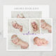 Dê as boas-vindas ao seu precioso milagre com estilo com este cartão de boas-vindas simples e minimalista com colagem de fotos para bebê. Este design apresenta uma fonte de caligrafia elegante que diz "boas-vindas" em roxo, com um fundo branco limpo para destacar os primeiros retratos do seu recém-nascido para compartilhar com amigos e entes queridos.