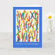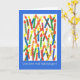 Um Cartão de Aniversário de cor brilhante com velas e "Parabéns" em norueguês, de uma colagem de papel pintada à mão por Judy Adamson. O dentro é o vazio deixado para a sua própria mensagem.