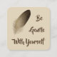 Mostre suporte com Cartões de bondade! Estas são cartas quadradas de tamanho cartão de visita com palavras positivas e inspiradoras para entregar aos amigos, esconder-se nos almoços dos membros da família, ou deixar um estranho tentar iluminar o seu dia. Esta design inclui uma pena em tons de marrom e o texto "Seja gentil consigo mesmo".