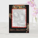 Quer mostrar a fantasia de Halloween do garoto para a família? Você pode fazer isso carregando sua foto neste cartão de fronteira do Dia das Bruxas. Esqueletos dançarinos em um fundo preto com uma linha vermelha apontando para a sua foto enquanto uma linha de personagens fantasiados desfrutam da festa. Dentro é um esqueleto fantasma da frente. Personalize o dentro de saudações também. Escolha a dentro à esquerda, dentro à direita ou vazio-os para a sua própria mensagem manuscrita. Este cartão faz um convite excelente a uma festa em fantasia. Coloque direções ou mapa de um lado e a hora, o lugar e o RSVP do outro.