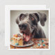 Um convite muito engraçado para imaginar um Grande Dane comendo um bolo de aniversário messily e vestindo um chapéu de festa, um convite excelente para o Grande Dane e amantes de cachorros. O cartão pode ser totalmente editado e personalizado para ajustado das suas necessidades.