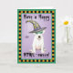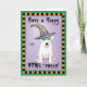 Mande saudações de Halloween com este cartão de um Dogo Argentino bonitinho vestindo uma máscara verde e um chapéu de bruxa decorado com uma aranha bobo. Excelente para crianças de todas as idades que amam Dogos e Halloween. Tenha uma boa HOWL-oggy!