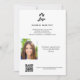 Personalize e adicione o logotipo, nome, endereço, texto, foto, seu próprio código QR ao seu site. Fundo branco, texto preto.