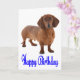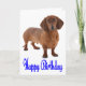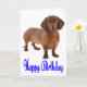 Brilhar o aniversário de alguém com um cachorrinho Dachshund. Este cartão de aniversário fofo apresenta uma imagem de um filhote marrom de Dachshund realçado contra um fundo branco nítido com Happy Birthday impresso em uma fonte azul rico. O meu desejo de aniversário é que continue a amar a vida e nunca pare de sonhar. Que a beleza e a felicidade sempre vos rodeiam. Cartões de aniversário do Dachshund são perfeitos para... * Uso pessoal * Organizações de resgate e adoção de cães * Criadores de negócios, treinadores, veterinários, etc. * Dons de papelaria - amarre alguns cartões com uma fita bonita