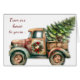 Na frente deste cartão de Cartões de natal bonito, um caminhão de fazenda com estilo retrô é decorado com uma coroa de Natal e carregares em casa, uma árvore cada verde recentemente cortada. Um Cachorro German shepherd sai da parte de trás do caminhão. O texto vermelho de um lado diz "Da nossa casa à sua...", e o sentimento continua a ser dentro. Todo o texto, frente e dentro, pode ser facilmente personalizado por você para dizer o que quiser.