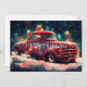 Cartão de Natal com design de caminhão vermelho que você pode personalizar com seu próprio texto.