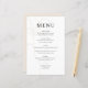 Cartão de menu personalizável com script elegante, tipografia simples e flor desenhada à mão. Este cartão de cardápio é perfeito para qualquer tema de casamento e estação. Personalize adicionando nomes, data e detalhes do menu.