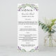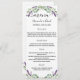 Um cartão de menu elegante. Personalize e adicione seus nomes, data e menu. Decorado com flores de lavanda, flores e verde de eucalipto.