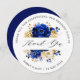 Elegante tema ouro azul real Convite para casamento com elegante buquê de azul real, Marinho, ouro, flores amarelas do rosa e folhas de eucalipto. Entre em contato comigo para obter ajuda sobre a personalização ou se você precisar de outro produto com este design.