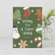 Cartão de saudação de Natal divertido com biscoitos bonitos e doces ilustrados à mão. Elementos de coordenação disponíveis.