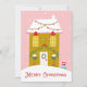 Feliz Cartão de Casa de Pão Rosa de Natal ilustrado pela designer internacional Kathrin Legg. Você pode encontrar mais suprimentos de festas e decoração domiciliar na coleção Pink Gingercake House