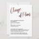 Em uma fonte de caligrafia moderna e ousada, criei um gráfico que simplesmente diz "Alteração de Planos"; esta imagem foi adornada com um efeito suave de rose gold metálico falso. Abaixo deste cabeçalho estão campos de modelo para adicionar seus detalhes pessoais. Todo o texto editável aparece em uma fonte sans-serif em maiúsculas, em preto; isso pode ser alterado se desejar. // 105 //