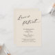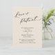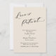 Se os planos do seu casamento mudaram inevitavelmente, este cartão simples e elegante pode ser a opção perfeita para você. Com uma fonte de caligrafia de luxo, o cabeçalho diz "O amor é paciente". Tudo o mais é versátil e pode ser editado: altere a fonte de apoio ou o fundo para qualquer cor que desejar. Use os campos do modelo para adicionar seus detalhes pessoais. // 137 //