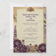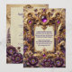 Entre num conto de fadas com este convite de casamento ornamentado, onde a elegância régia encontra o romance poético. Com uma luxuosa moldura barroca dourada, pedras preciosas roxas ricas e um poema original de coração, este design define o tom para uma celebração verdadeiramente encantada.