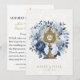 Com uma bela imagem católica tradicional da imagem da Eucaristia em uma Monstrância Dourada rodeada por uma bela coroa floral, sobreposta a um fundo de renda branca. Uma oração está no verso para os noivos. Todo o texto e fontes podem ser modificados.