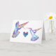 Cartão de casamento de beija-flores elegante e colorido, fácil de personalizar.