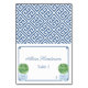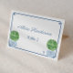Este design é vendido como uma placa plana de 3,5x5 polegadas que você precisará dobrar (ou pontuar e dobrar) ao meio para fazer placas individuais de lugar com um tamanho dobrado de 3,5x2,5 polegadas. Este clássico design apresenta uma bola de madeira boxwood em um plantador de Jar Ginger azul e branco. A design também tem uma fronteira da Chave Grega na frente e um padrão da Chave Grega na parte de trás. Você pode alterar a cor do contraste (atualmente um azul escuro) digitando a ferramenta design ("clique para personalizar mais" abaixo das caixas de personalização de texto) e alterando as cores de fundo. Mostrado aqui como cartões de lugar para um casamento, mas funcionaria tão bem quanto cartões de tenda de comida, para um evento inteligente, digamos, um campo de golfe ou uma casa de campo.