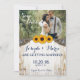 Cartão de Casamento de Renda e Burlap com Girassol