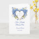 Este cartão de casamento é mostrado com uma imagem cardíaca azul de hydrangeas. O texto diz " Dois Corações Se Tornam Um". Nomes personalizados e data de casamento na frente, mude o texto da amostra para o seu com esta modelo. Personalize este item e altere os nomes de exemplo para o seu. Imagem licenciada