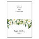 Este cartão de casamento floral branco verde é perfeito para um casamento rústico. O design apresenta elegantes pedras brancas de aquarela com folhagem verde. Personalize com o nome de convidado e o número da tabela e adquira cada cartão individualmente. Nota importante: essas placas chegam achatadas. Terá de os marcar e dobrar.
