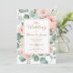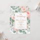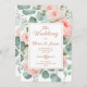 Cartão de casamento elegante com peônias cor-de-rosa pinceladas, rosas de marfim macio e verde de eucalipto fresco, perfeito para uma celebração romântica e eterno de amor.