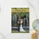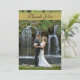 banda de ouro na moda metálico em cima da sua foto de casamento escolhida com obrigados escritos em um roteiro de ornamentado. O contrário tem sua mensagem pessoal para seus convidados. Simples, mas ornamentado. Obrigado.
