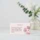 Criado para a noiva que ama floral em aquarela rosa claro. Este cartão de inclusão pequeno é totalmente personalizável. Altere todo o texto para o que você precisar. O tamanho deste cartão é ótimo para incluir seu site, nota sobre recepção apenas para adultos ou brunch após o casamento. O design deste convite é suave, romântico e moderno. Combine-o com outros itens da coleção para um conjunto de convites coeso.