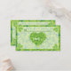 Rua. Cartão de casamento irlandês do Dia de Patrick, com um padrão branco verde e um coração elegante feito de trevo/shamrock irlandês verde sortudo.