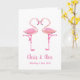 Rosa, foi amor à primeira vista! Estes elegantes flamingos do LeopardyNonsense são perfeitos por felicitar um casal feliz no dia do seu casamento 💗 Você pode personalizar o cartão com seus nomes e a data do seu grande dia 🦩