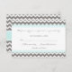 Cartões RSVP de Casamento em cinzas de carvão elegantes e contemporâneas, padrão quevron azul-turquesa claro e zigzags modernos brancos. Personalizável com seus detalhes de casamento, disponível em muitos produtos de casamento correspondentes.