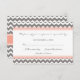 Cartões RSVP de Casamento em cinzas escuras elegantes e contemporâneas de carvão vegetal, cor-de-rosa-laranja-pêssego e retrorreflectores brancos e chevrons casuais zigzags padrão. Personalizável com seus detalhes de casamento, disponível em muitos produtos de casamento correspondentes.