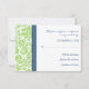 Cartões RSVP de Casamento em elegante e contemporâneo verde-de-maçã brilhante, azul-marinho escuro e cor damasco floral clássico e chic branca. Personalizável com seus detalhes de casamento, disponível em muitos produtos de casamento correspondentes.