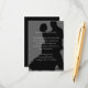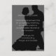 Cartões de casamento com uma mensagem que aos convidados para deixar as crianças em casa. Pequenos cartões cinza e preto têm um casal dançando em silhueta como fundo para o texto branco impresso. Use a mensagem de exemplo ou substitua-a por seu próprio pedido para que os convidados sejam apenas adultos.
