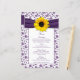Você pode personalizar o texto neste elegante casamento floral violeta e roxo de girassol e branco, ou no cartão de menus especial. Para alterar o texto, use a opção personalizar. Para alterações mais abrangentes no menu, incluindo alterações na fonte, tamanhos de fonte, cor de fonte ou posicionamento de texto, use a opção personalizar. Uma escolha bonita e clássica para um casamento no outono ou verão ou qualquer outra ocasião especial como aposentadoria, aniversário ou festa de aniversário. O roxo sofisticado, o amarelo e o branco é sempre uma escolha na moda. Os girassóis acrescentam uma sensação de sol.