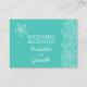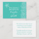 Um cartão de informação de casamento, simples e de dupla face, em forma de ondas de mar de praia, no estilo do casamento, em tons verdes e brancos aqua, com desenho de estrelas e ondas de giro. Este cartão de receptáculo faz parte de um jogo de casamento correspondente. Ideal para usar como cartão de informação de casamento após a cerimônia, ou como cartão de instruções para manter seu convidado informado do dia e da festa à frente, também pode ser usado um cartão de registro de presente, um cartão de alojamento, um cartão de poço de desejo ou um cartão de obrigado com sua fatia de bolo de festas, ou até um cartão de site de casamento mudando o texto personalizável na frente e no verso. Desenvolvido exclusivamente pela Sarah Trett.