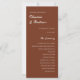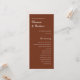 Elevem sua cerimônia com o 'Cartão de Cerimônia de Casamento Moderno Elegante de Rust Brown' da coleção 'Nyssa'. A frente, enfeitada com os nomes dos casais e o programa contra um rico pano de fundo marrom-ferrugem, define um tom sofisticado. Sacudir atrás para um fundo neutro/marfim com os nomes da sua festa de casamento. Explore a coleção completa de "Nyssa" para uma papelaria perfeitamente coordenada, garantindo que cada detalhe ressoe com o calor e a criatividade da estética boho.