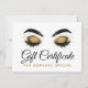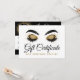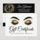 Um cartão personalizado de certificado de presente para clientes, familiares e amigos! Glamour moderno para profissionais de maquiagem, cílios e sobrancelhas, cosmetólogos independentes, estilistas e muito mais! Ousado em preto e branco com um toque de brilho dourado. Cílios e estilo de silhueta de sobrancelha na moda para o salão que se destaca!