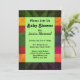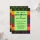 Convite para chás de fraldas. Colorida com azul, verde, rosa escuro e laranja neste convite retrô ao estilo de 70. Vamos tribal com este desenho abstrato Aztec na frente e atrás desta placa plana. O padrão está em tons de azul, roxo e castanho claro ou bronzeado. Substitua as informações por suas. Toda a personalização está disponível para a parte frontal e traseira da placa.