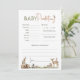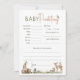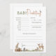 Apresentamos o nosso cartão de previsão de chá de fraldas de animais da floresta, perfeito para uma celebração engraçada e caprichosa! Apresentando um tema da floresta aquarela com criaturas adoráveis como uma raposa, urso pardo, coelho e veado, é excelente para um chá neutro em relação ao gênero. Esta design de inspiração boêmica estabelece uma cena doce e simples com sua paisagem natural de árvores verdes e aves clássicas da floresta. Ideal para acolher um menino ou uma menina, este cartão de jogo de chá de fraldas é tão charmoso quanto é eterno. Por favor, sinta-se à vontade para fazer quaisquer perguntas sobre a design do produto; estamos felizes em ajudar!