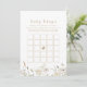 Este cartão de chá de fraldas de bingo de flores da Coleção Alyssa é perfeito para um chá de fraldas de primavera ou verão ou para um bebê borrifador. A design botânica apresenta flores brancas silvestres e texto dourado com uma elegante sensação moderna.