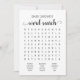 Adquira este jogo e desfrute de um cartão de pesquisa Word de alta qualidade para o seu evento! Design de preto e branco neutro em gêneros.
