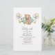 Basta criar um belo convite para o chá de fraldas do tema animal da floresta com este modelo, com um urso bonito, balões, refeitórios e um talento botânico de eucalipto folhado. DICA: Verifique os outros itens nesta coleção com o mesmo design para obter uma experiência de compro completa e fácil para a sua parte chá de fraldas.