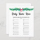 O Cartão de Jogo de Chá de fraldas Race de Nome de Bebê de Natal é criado de qualquer forma. O Cartão de Chá de fraldas de Raça de Natal traz diversão festiva ao seu chá de fraldas de Natal. Apresentando uma animada design de Natal, este jogo interativo desafia os convidados a criar nomes de bebês para cada letra do alfabeto. O jogo inclui elementos de temas natalinos, como holly, ornamentos ou flocos de neve. Mantém os hóspedes entretidos com um desafio lúdico de corrida de nomes de bebês. Ideal para o inverno ou chás de fraldas de Natal. Uma maneira divertida e festiva de engajar seus convidados e celebrar o próximo pacote de alegria!