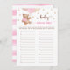 Adquira este cartão editável e desfrute do Jogo Race de Nome de Bebê de alta qualidade para o seu evento! Balões rosa e Dourados, Urso de Teddy. Atividades de chá de fraldas!